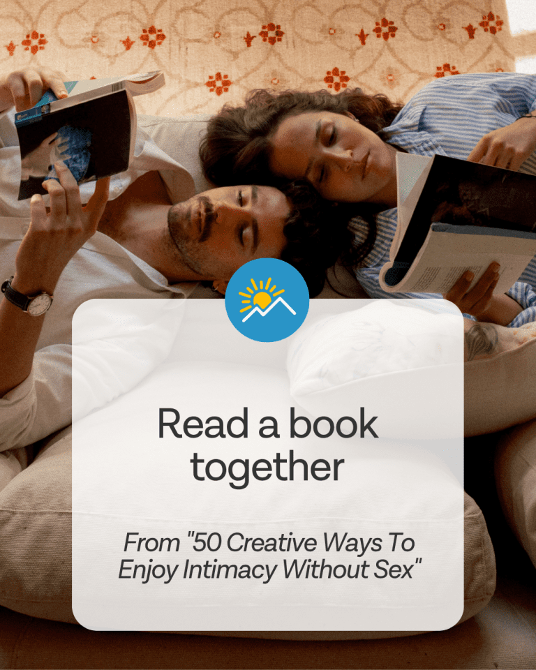We all have a unique “love tank” that needs filling. A popular book, The 5 Love Languages, talks about this. It’s a great read on your journey to building intimacy without sex. When you’re running low on new ideas, you’ll have something to fall back on — besides this list. (But keep reading…)